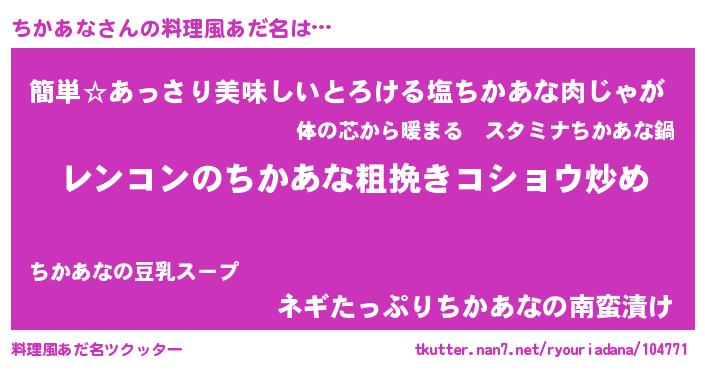 | 意味不明あだ名 | 『自称ちかあな』『永久保存ちかあな』 |