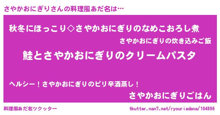 | 男性向けラノベタイトル風あだ名 | 『ノーゲーム・ノーサヤカオニギリ』 |