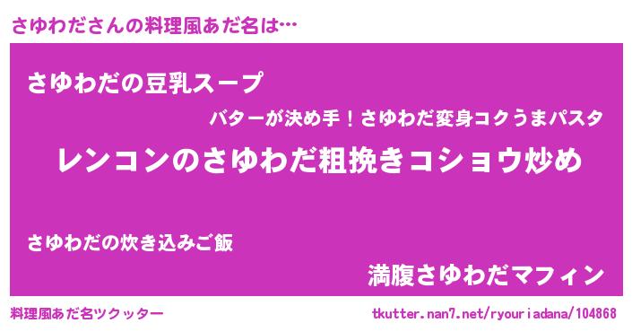 | 意味不明あだ名 | 『自称さゆわだ』『永久保存さゆわだ』 |