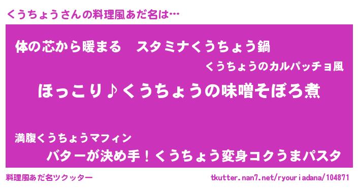 | 男性向けラノベタイトル風あだ名 | 『くうちょうの憂鬱』 |