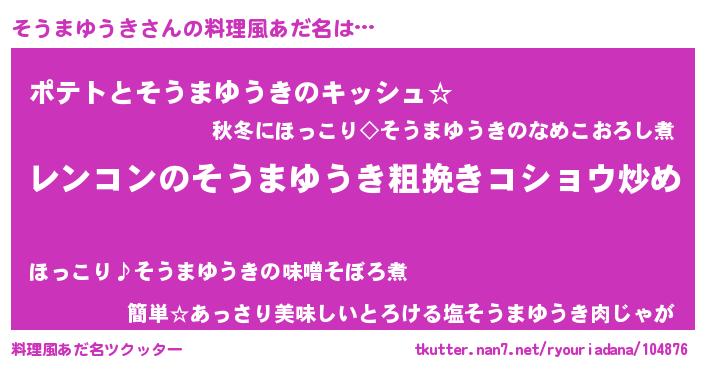 | ヘコむあだ名 | 『そうを』『そうまゆうき(笑)』 |