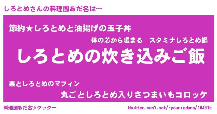 | 意味不明あだ名 | 『ペロリンしろとめ』『自称しろとめ』 |