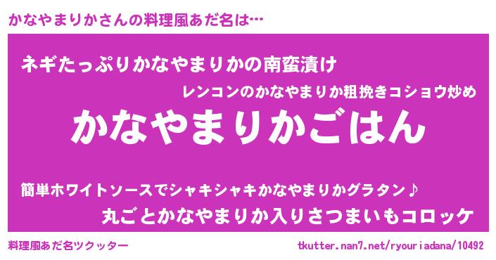 | 男性向けラノベタイトル風あだ名 | 『カナヤマリカスレイヤー』 |