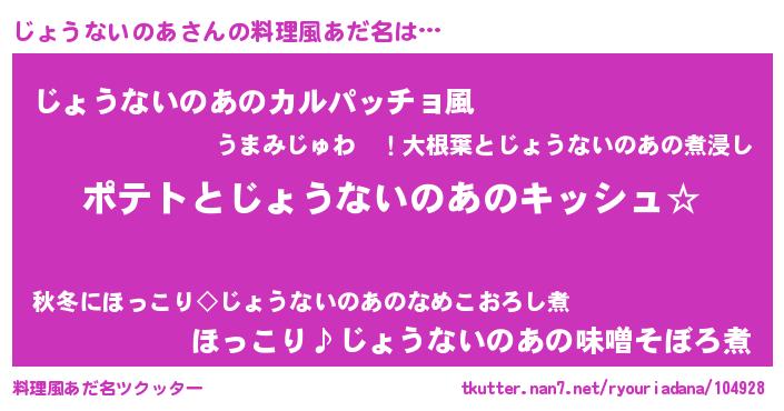 | 意味不明あだ名 | 『とにかく怪しいじょうないのあ』 |