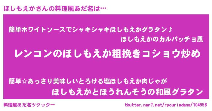 | ヘコむあだ名 | 『ほしお』『ほしもえか(震え声)』 |