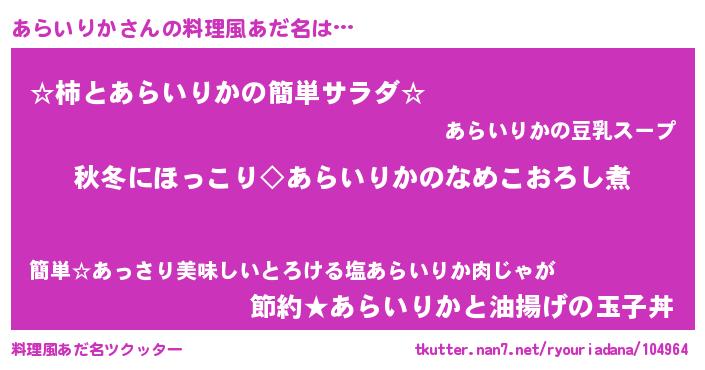 | 胡散臭い通販商品みたいなあだ名 | 『億万長者になれる水晶球…その名も「あらいりか」』 |