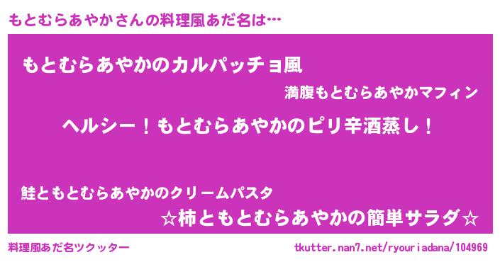| 男性向けラノベタイトル風あだ名 | 『Re:もとむらあやかから始める異世界生活』 |
