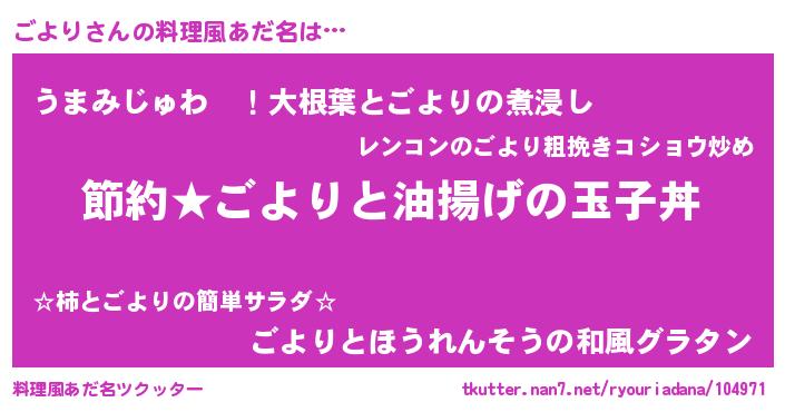 | 男性向けラノベタイトル風あだ名 | 『ごよりの憂鬱』『魔法科高校のごより』 |