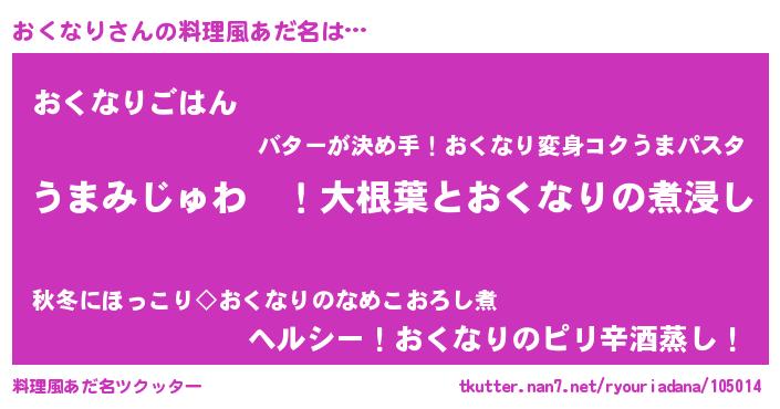 | 女子向けラノベタイトル風あだ名 | 『おくなりの婚約者』『おくなり恋絵巻』 |