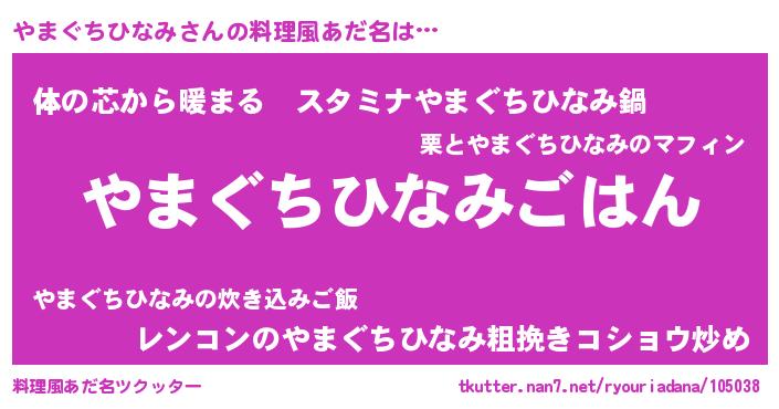 | 男性向けラノベタイトル風あだ名 | 『転生したらやまぐちひなみだった件』 |