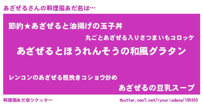 | 意味不明あだ名 | 『もやし科あざぜる属』『自称あざぜる』 |
