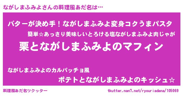 | 男性向けラノベタイトル風あだ名 | 『はたらくながしまふみよさま!』 |