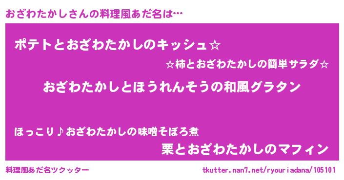 | 女子向けラノベタイトル風あだ名 | 『おざわたかしの玉の輿計画!』 |