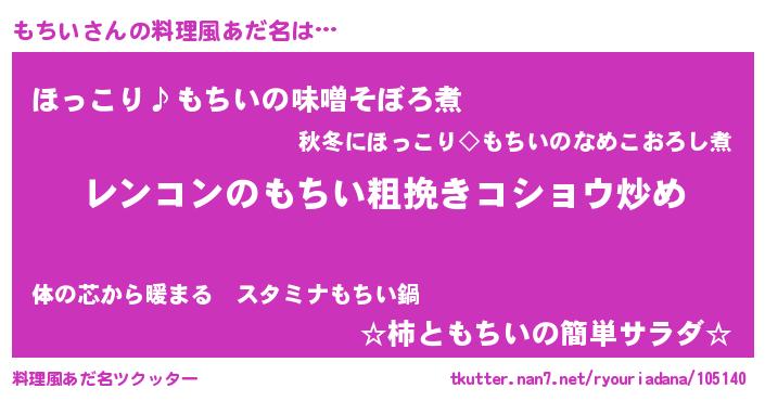 | 男性向けラノベタイトル風あだ名 | 『魔法科高校のもちい』『もちいの憂鬱』 |
