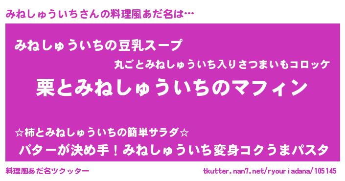 ヘコむあだ名 | 『みねっちょ』『みねしゅういち(震え声)』 |