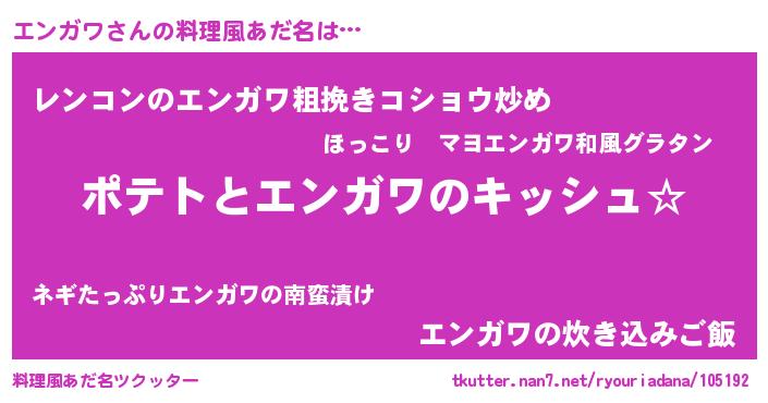 | 女子向けラノベタイトル風あだ名 | 『エンガワの卵を拾いまして』 |