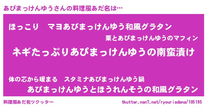 | ヒーロー風カッコイイあだ名 | 『スーパーアピマッケンユウ』 |