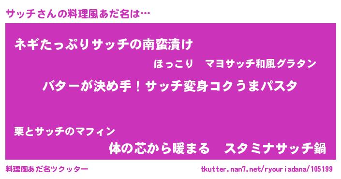 | 女子向けラノベタイトル風あだ名 | 『サッチ恋絵巻』『サッチの雑貨屋さん』 |