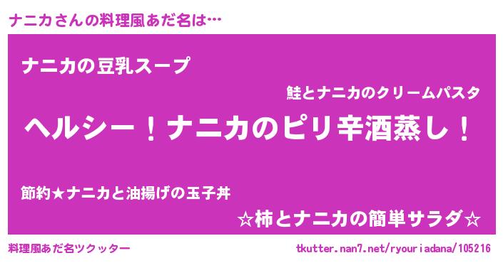 | ヒーロー風カッコイイあだ名 | 『最強戦士ナニカ』『暗黒騎士ナニ』 |
