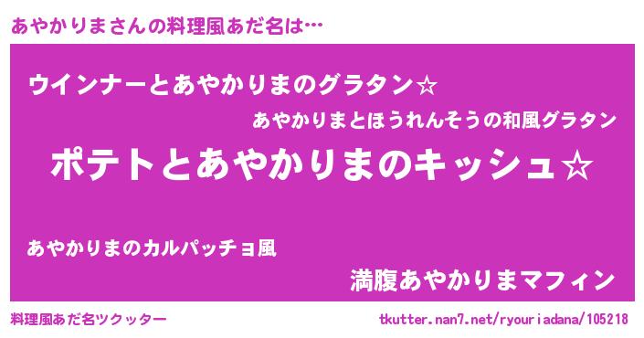 | ポケモン風あだ名 | 『ヒアヤカリマ』『アヤカダネ』 |