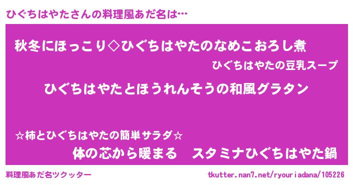 | ピコ太郎風あだ名 | 『ピヒ一郎』『ヒグ三郎』『ヒヒ太郎』 |