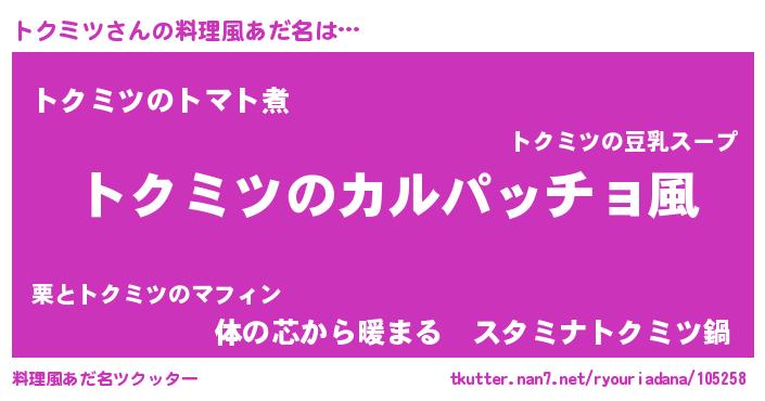 | 意味不明あだ名 | 『住所不定無職トクミツ(98歳)』 |