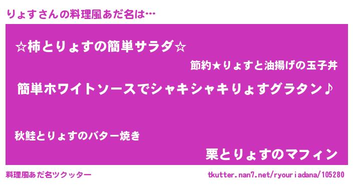 | 女子向けラノベタイトル風あだ名 | 『りょす様がみてる』『りょすの契約王妃』 |