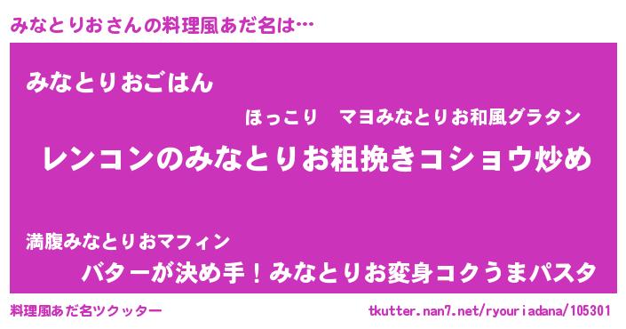 | ヘコむあだ名 | 『みなとりお(笑)』『みなふぇ~』 |