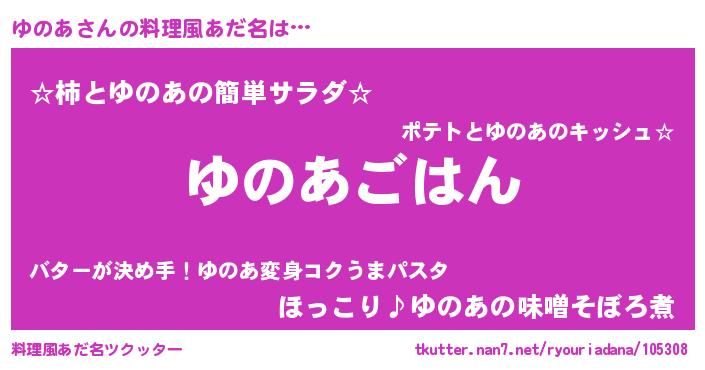 | ピコ太郎風あだ名 | 『ユコ五郎』『ユノ一郎』『ユユ太郎』 |