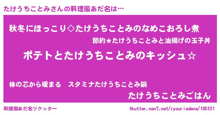 | 意味不明あだ名 | 『とにかく怪しいたけうちことみ』 |