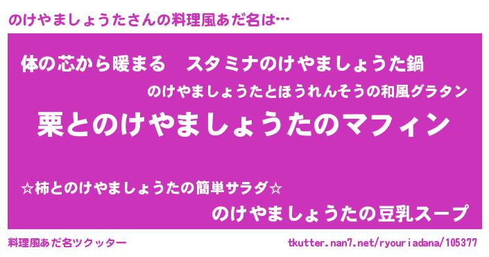 | 意味不明あだ名 | 『のけやましょうたフォーエバー』 |