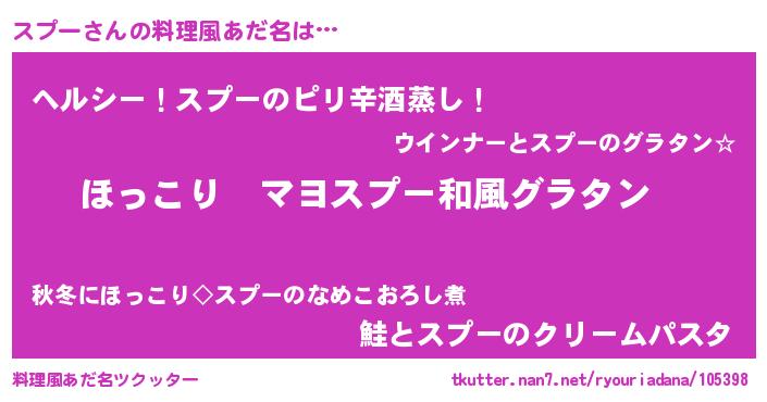 | 男性向けラノベタイトル風あだ名 | 『この素晴らしい世界にスプーを!』 |