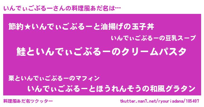 | 欧米人風あだ名 | 『ダニエルいんでぃごぶるー』 |