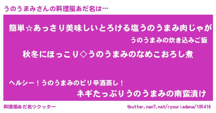 | 男性向けラノベタイトル風あだ名 | 『うのうまみに滅ぼされるだけの簡単なお仕事です』 |