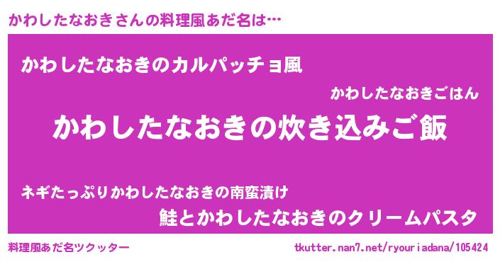 | 意味不明あだ名 | 『住所不定無職かわしたなおき(59歳)』 |