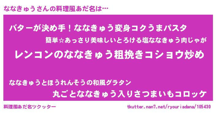 | ヘコむあだ名 | 『ななきゅう(小並感)』『なまこ酢』 |