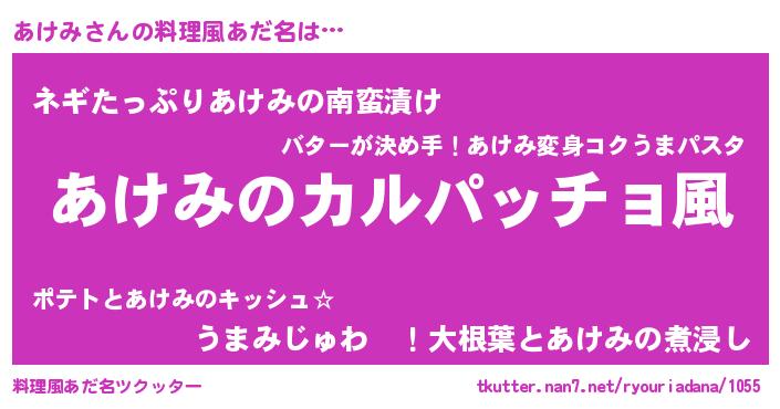 | 意味不明あだ名 | 『住所不定無職あけみ(81歳)』 |