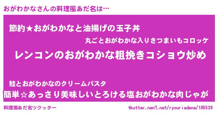 | 胡散臭い通販商品みたいなあだ名 | 『ガンによく効くアガリクス…その名も「おがわかな」』 |