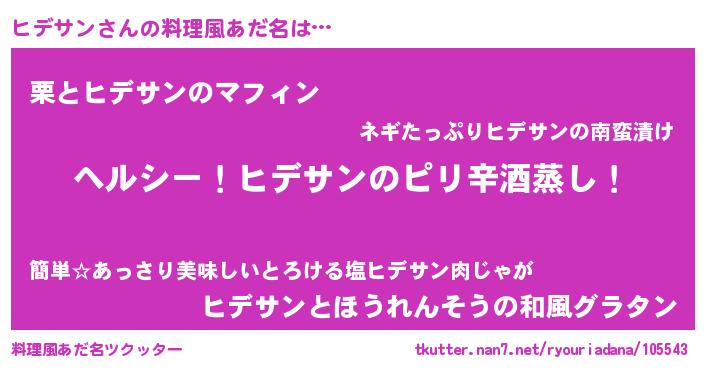 | 男性向けラノベタイトル風あだ名 | 『Re:ヒデサンから始める異世界生活』 |