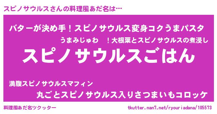 | 男性向けラノベタイトル風あだ名 | 『スピノサウルススレイヤー』 |