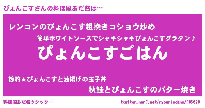 | 男性向けラノベタイトル風あだ名 | 『ピョンコススレイヤー』 |