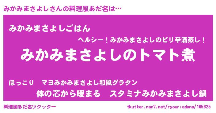 | 男性向けラノベタイトル風あだ名 | 『おまえをオタクにしてやるから、俺をみかみまさよしにしてくれ! 』 |