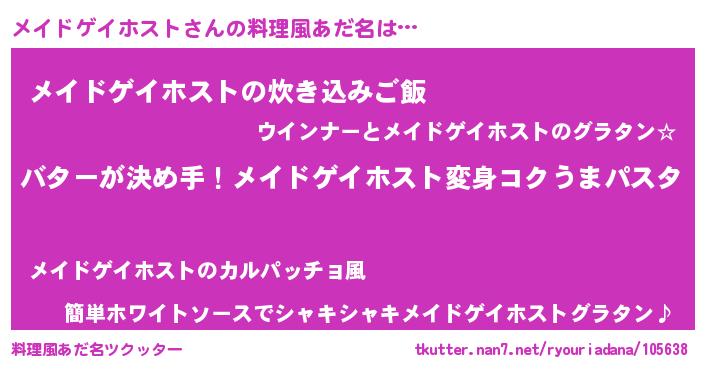 | 女子向けラノベタイトル風あだ名 | 『メイドゲイホスト恋絵巻』 |
