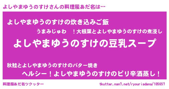| ポケモン風あだ名 | 『ヒヨシヤマユウノスケ』『メロヨッシ』 |