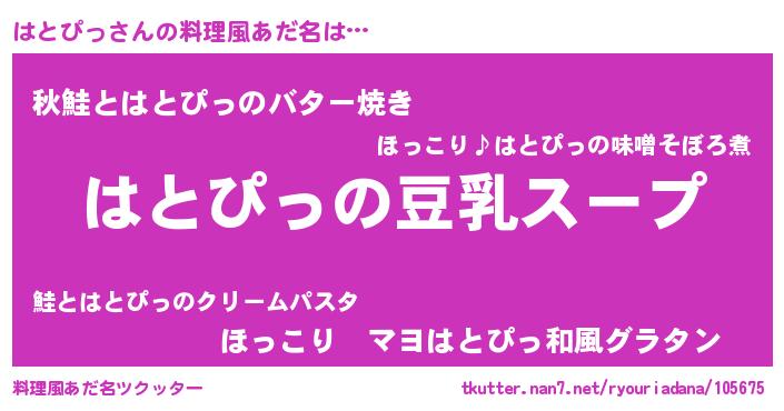 | ポケモン風あだ名 | 『ヒハトピッ』『ゼニハト』 |