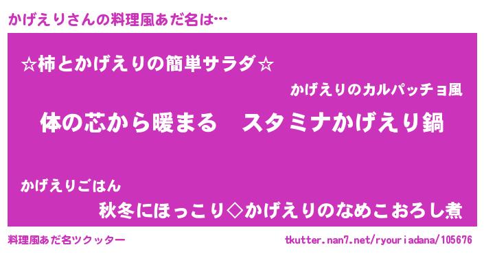 | 意味不明あだ名 | 『かげえりフォーエバー』 |