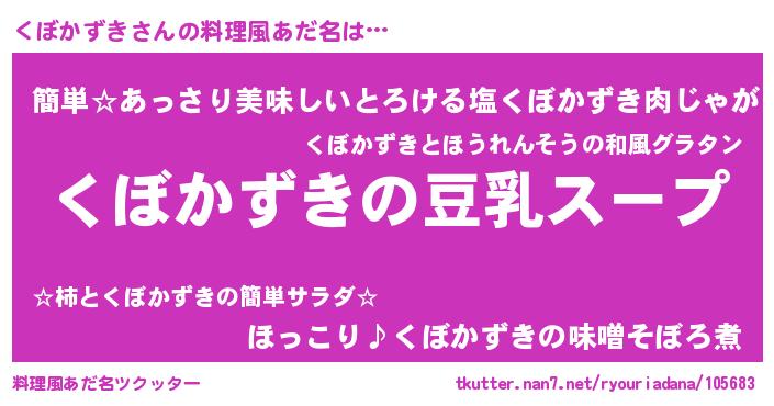 | 胡散臭い通販商品みたいなあだ名 | 『信頼と実績のサプリメント…その名も「くぼかずき」』 |