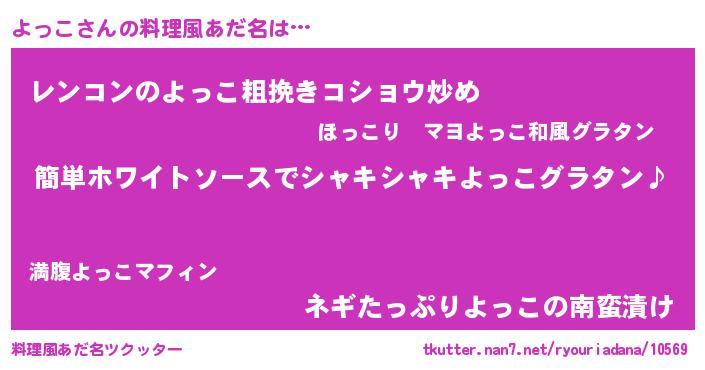 | 男性向けラノベタイトル風あだ名 | 『よっこの嫁は女の子じゃないと思った?』 |
