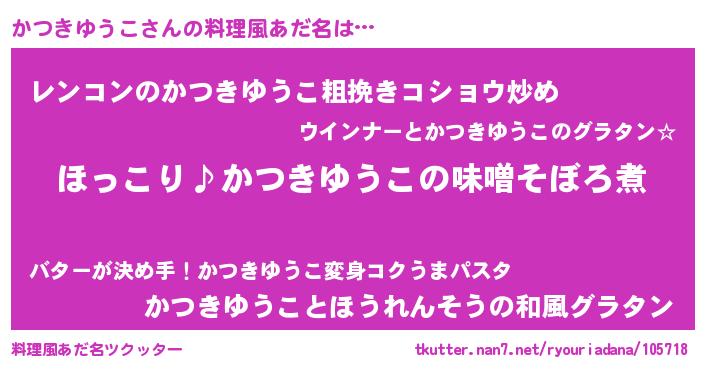 | 女子向けラノベタイトル風あだ名 | 『(仮)かつきゆうこのやんごとなき事情』 |