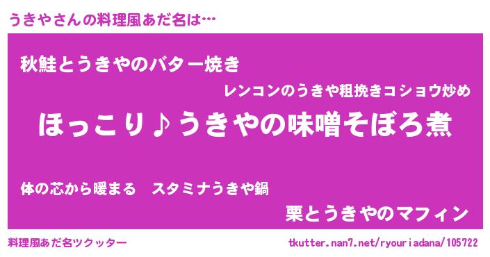 | 男性向けラノベタイトル風あだ名 | 『うきやの憂鬱』『はたらくうきやさま!』 |
